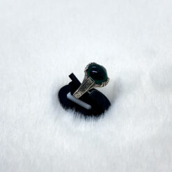 خاتم فضة عيار 925 بحجر العقيق الأخضر الغامق مقاس 24