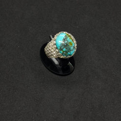 خاتم فضة عيار 925 بحجر الفيروز السيناوي مقاس 21