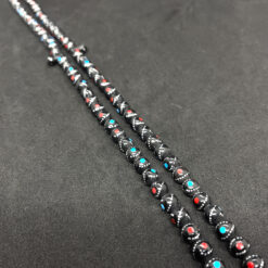 سبحة كوك أسود بالمرجان والفيروز مطعم بالمعدن 100 حبة – 8 مم