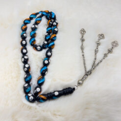 سبحة كوك أسود عيون بالمعدن ومينا الفيروز والكهرمان 33 حبة – 10 مم