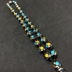 سبحة يسر بالفضة وحجر الكهرمان والفيروز 33 حبة – 9 مم