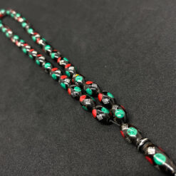 سبحة يسر بالفضة وحجر المرجان والملاقيت 33 حبة – 9 مم