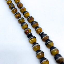 سبحة يسر مجدول بالفضة والكهرمان 33 حبة – 12 مم