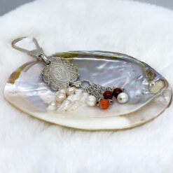 ميدالية فضة عيار 925 بحجر العقيق والمرجان وحبات اللؤلؤ